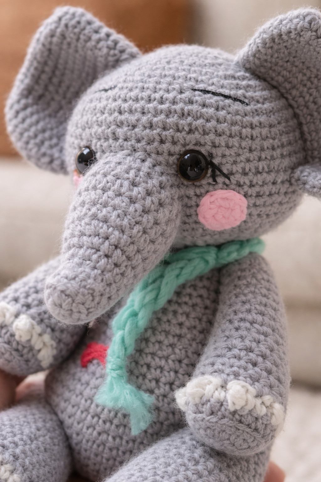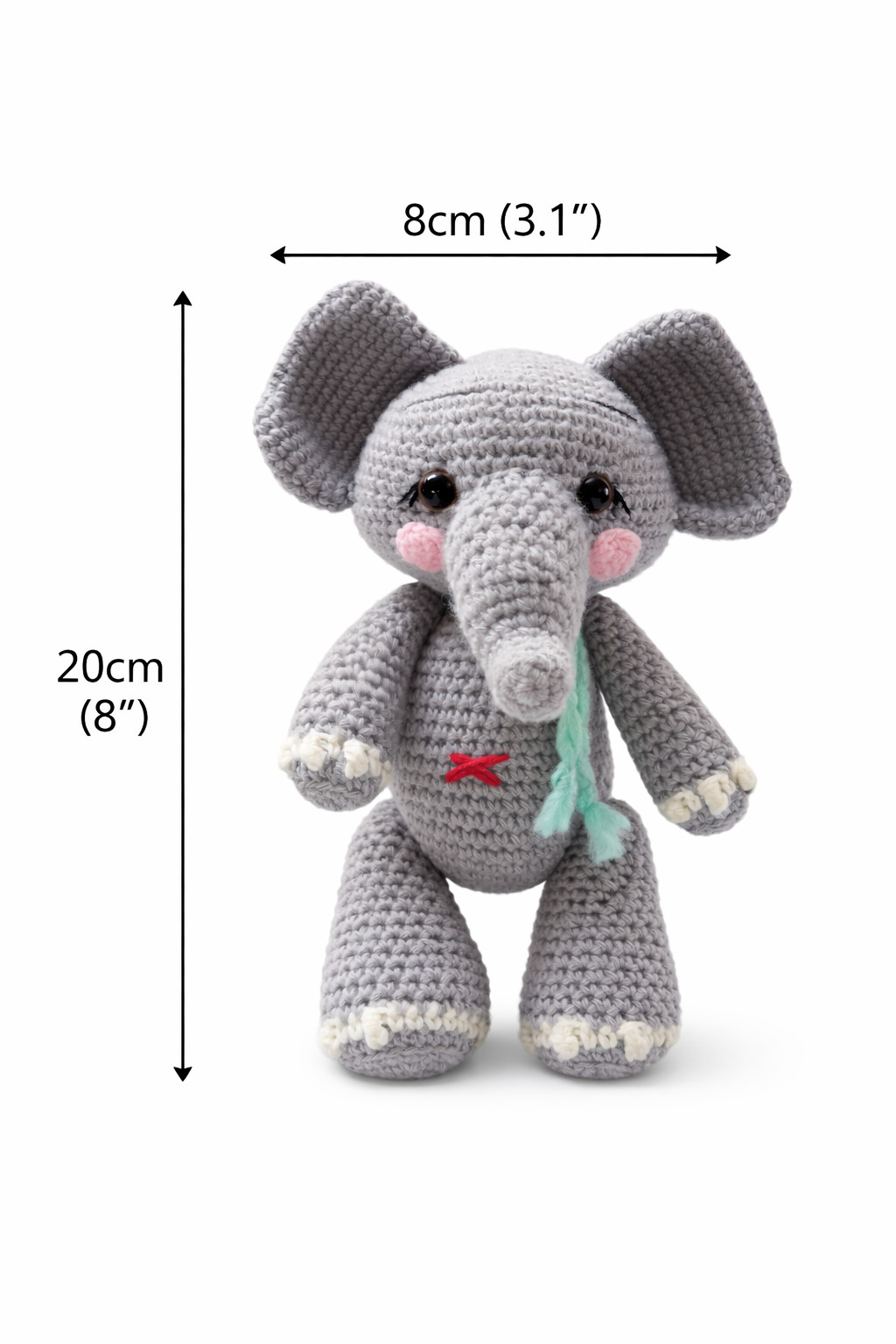 Nuestro hermosísimo elefantito tejido a mano es una pieza artesanal llena de ternura y calidez. Elaborado cuidadosamente por artesanos en Guatemala, cada elefantito es único, con textura suavemente tejida que refleja el valor del trabajo hecho a mano.