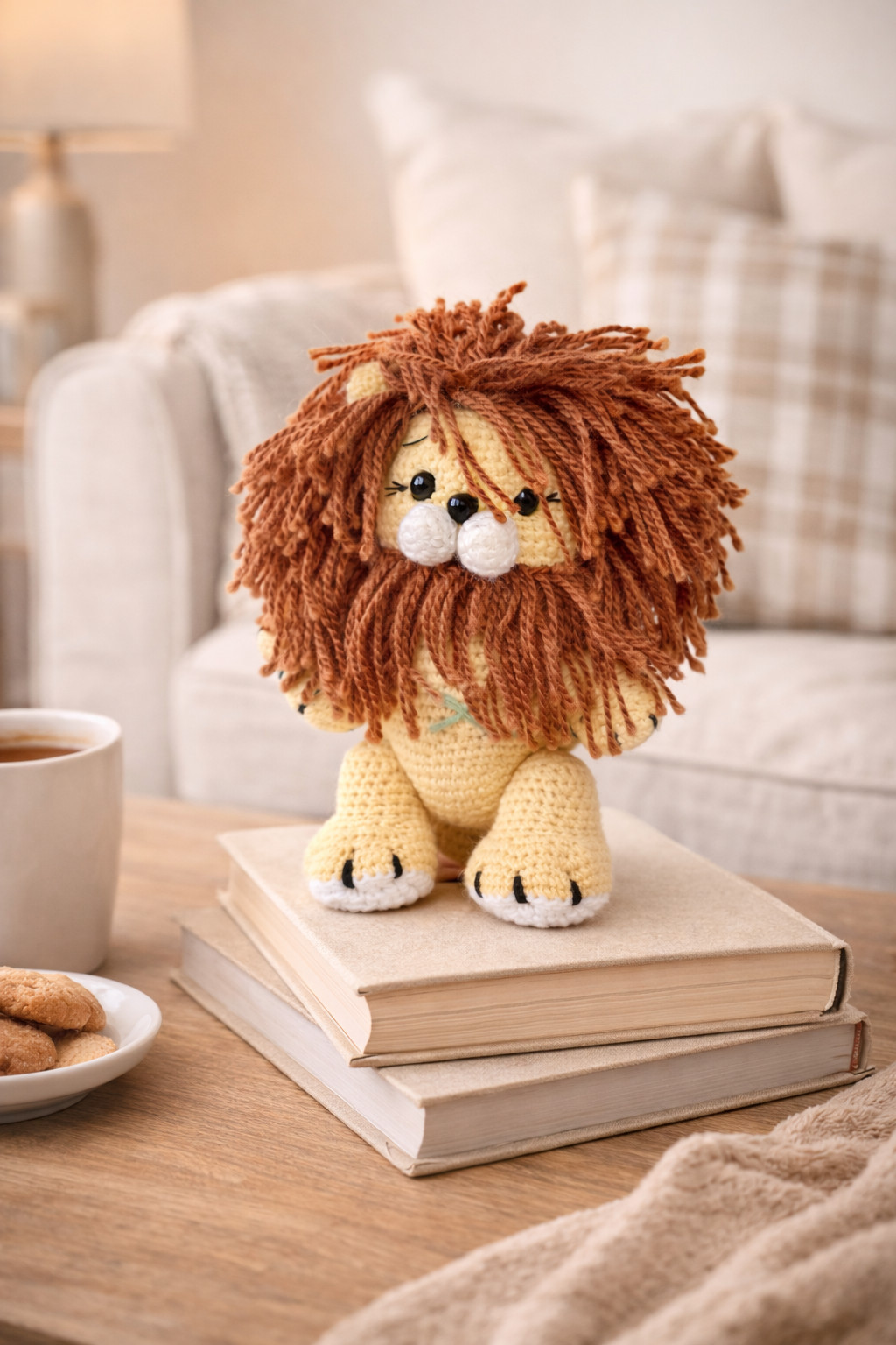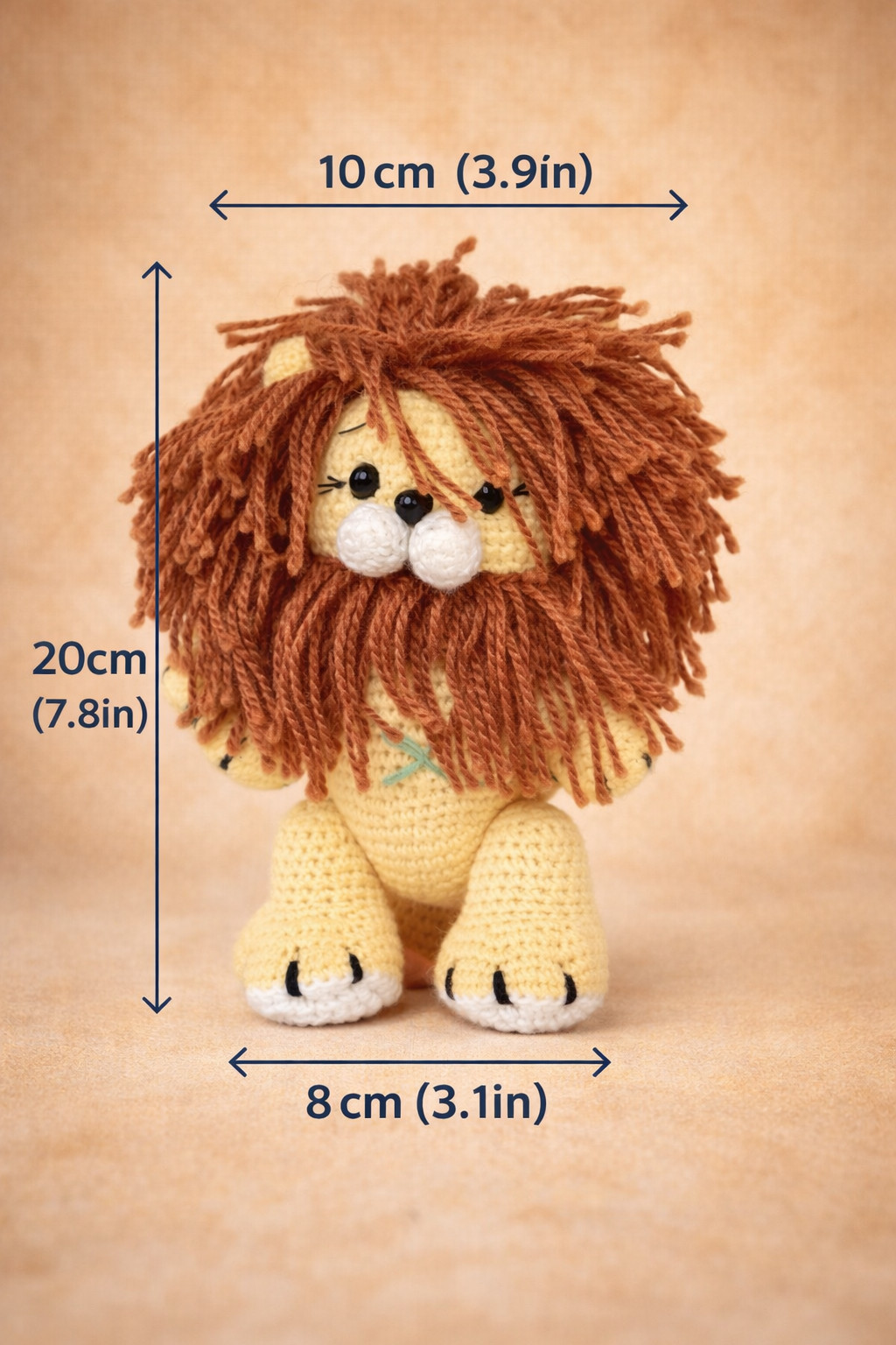Este hermoso león tejido a mano es una pieza artesanal que simboliza fortaleza y ternura en perfecto equilibrio. Elaborado cuidadosamente por artesanos en Guatemala, cada león es único, con textura suavemente tejida y una melena que desborda amor refleja el valor del trabajo hecho a mano.