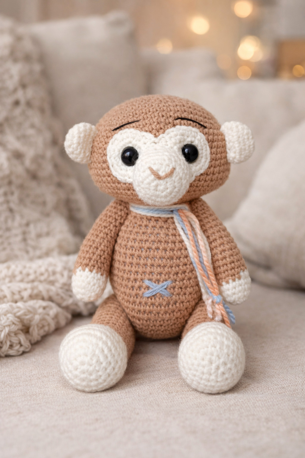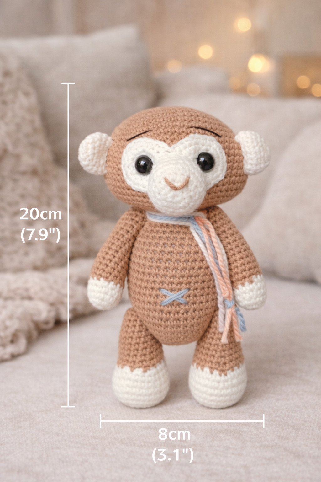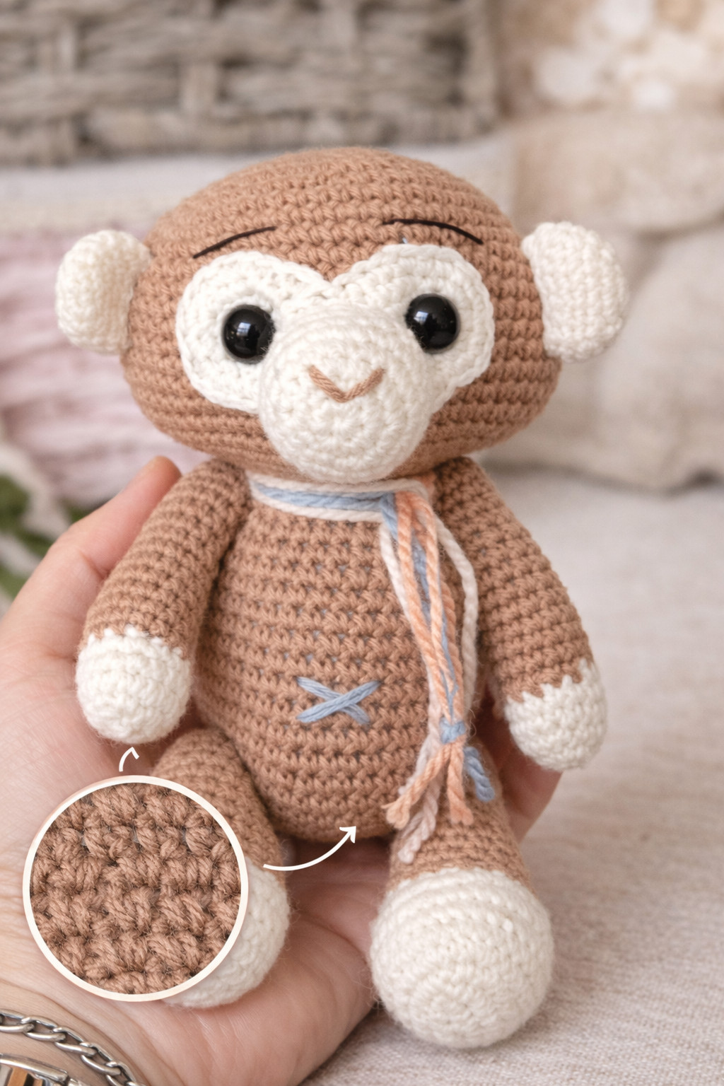 Nuestro tierno monito tejido a mano es una pieza artesanal llena de ternura y calidez. Elaborado cuidadosamente por artesanos en Guatemala, cada mono es único, con textura suavemente tejida que refleja el valor del trabajo hecho a mano.